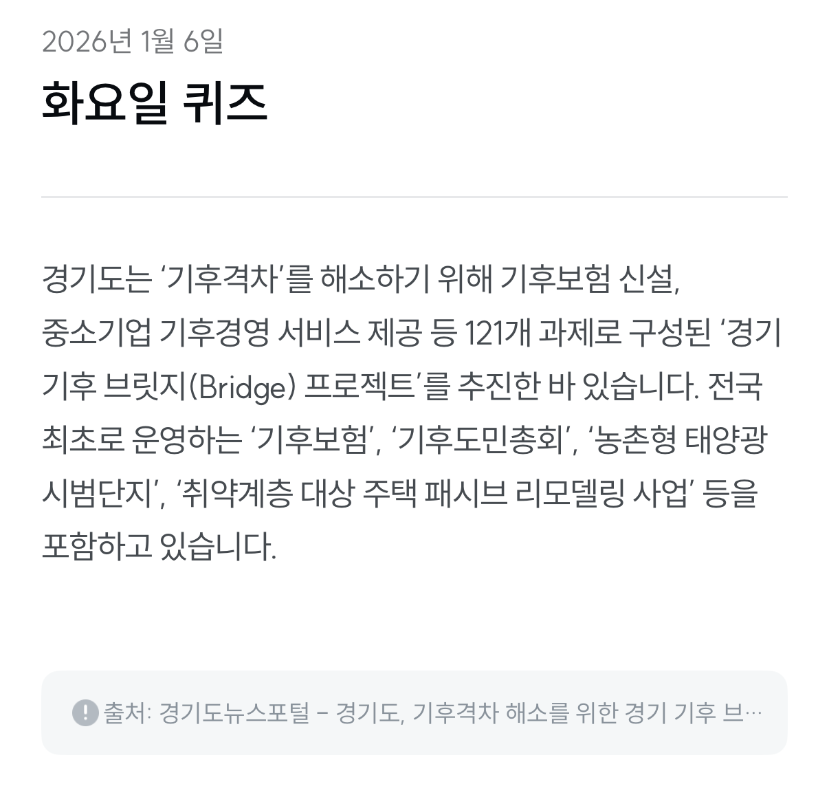 2026년 1월 6일 오늘의 퀴즈 정답 및 기후 정보 정리