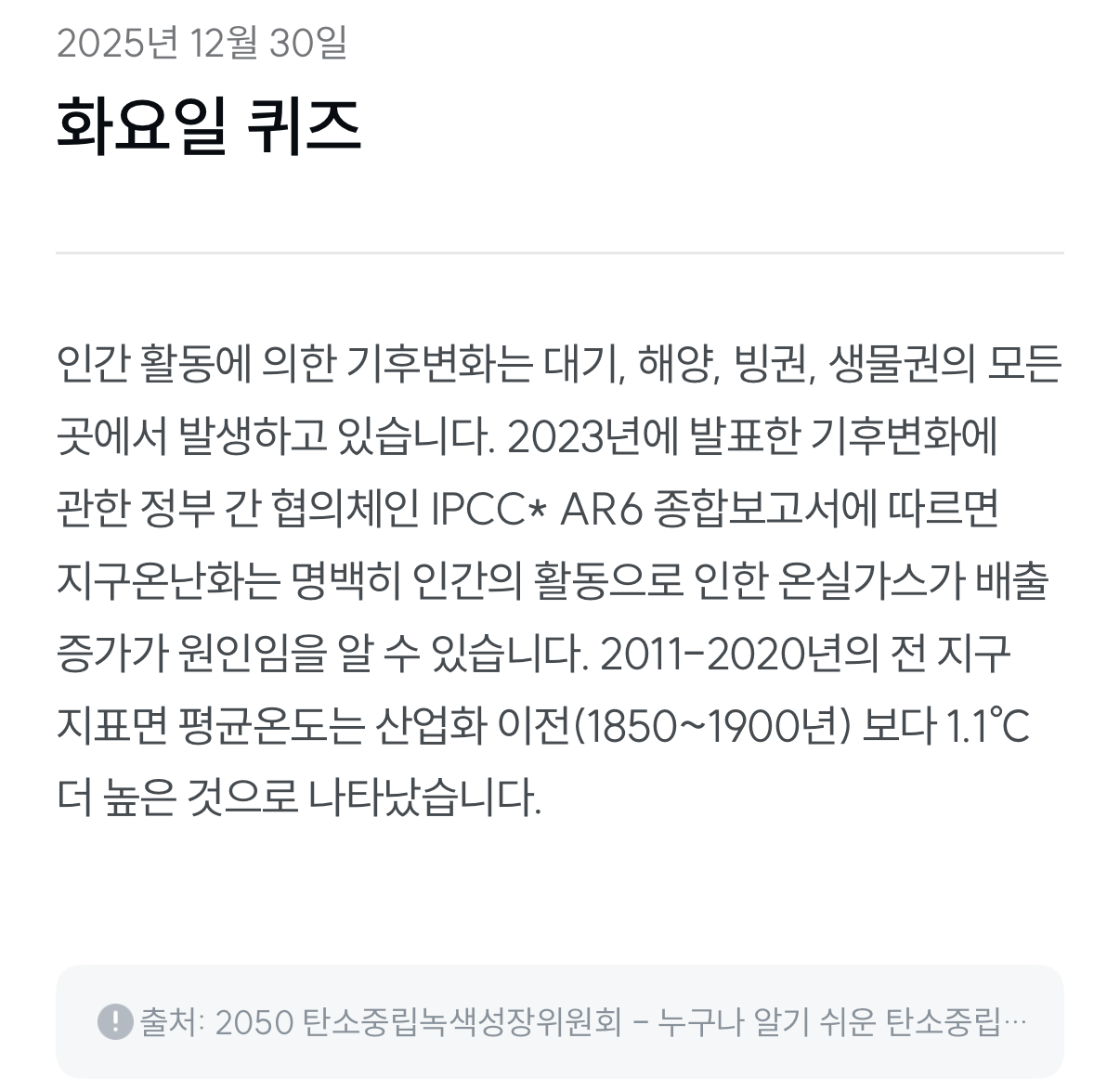 [기후 행동 기회 소득] 기후변화는 인간 활동과는 무관하게 자연적으로만 발생한다. (2025년 12월 30일)