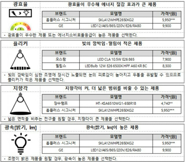 📌 전구 선택 시 체크 포인트