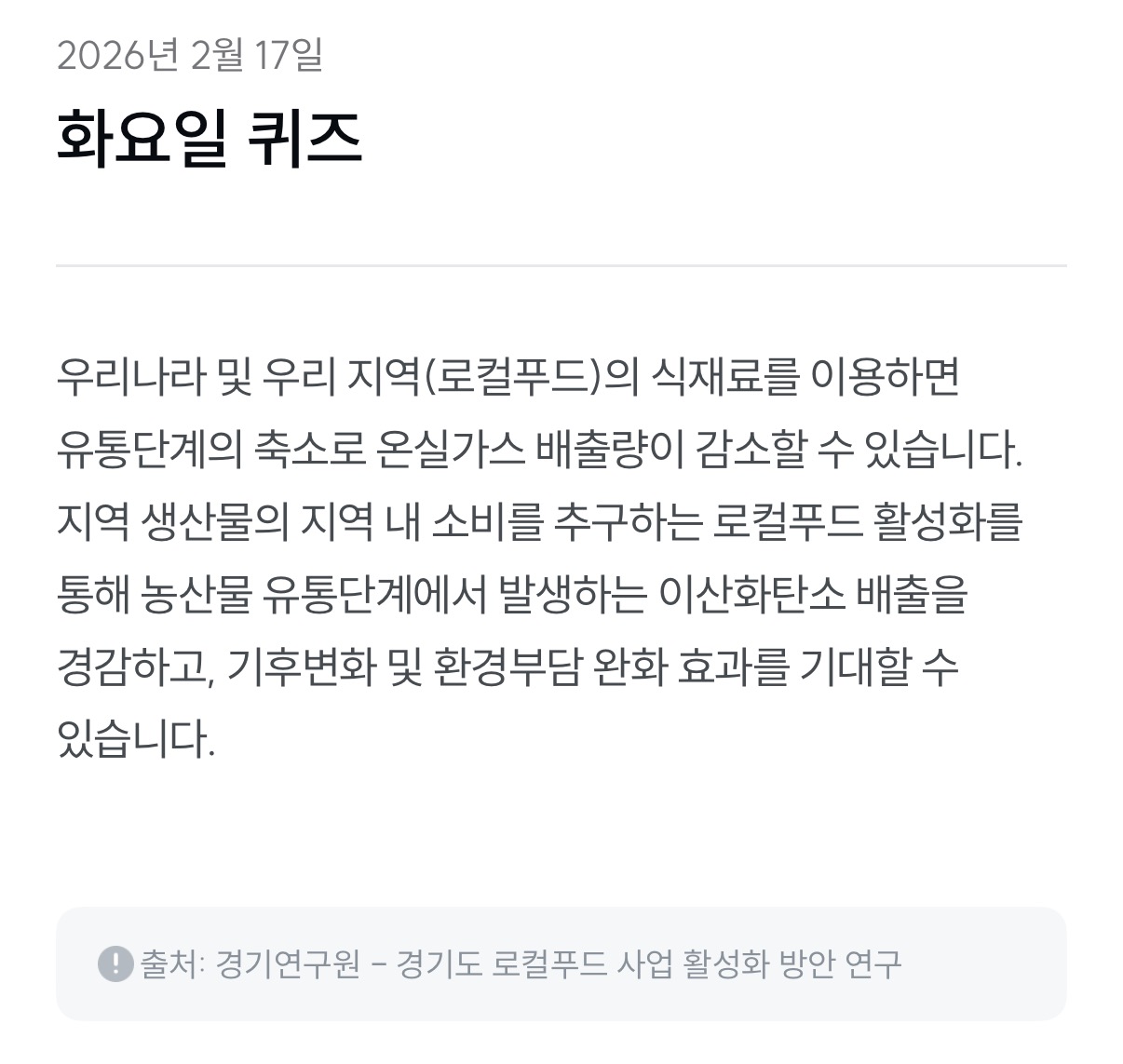 탄소중립 사회를 실현하기 위한 가장 간단한 방법은 바로 **‘가까운 먹거리 선택하기’**입니다.