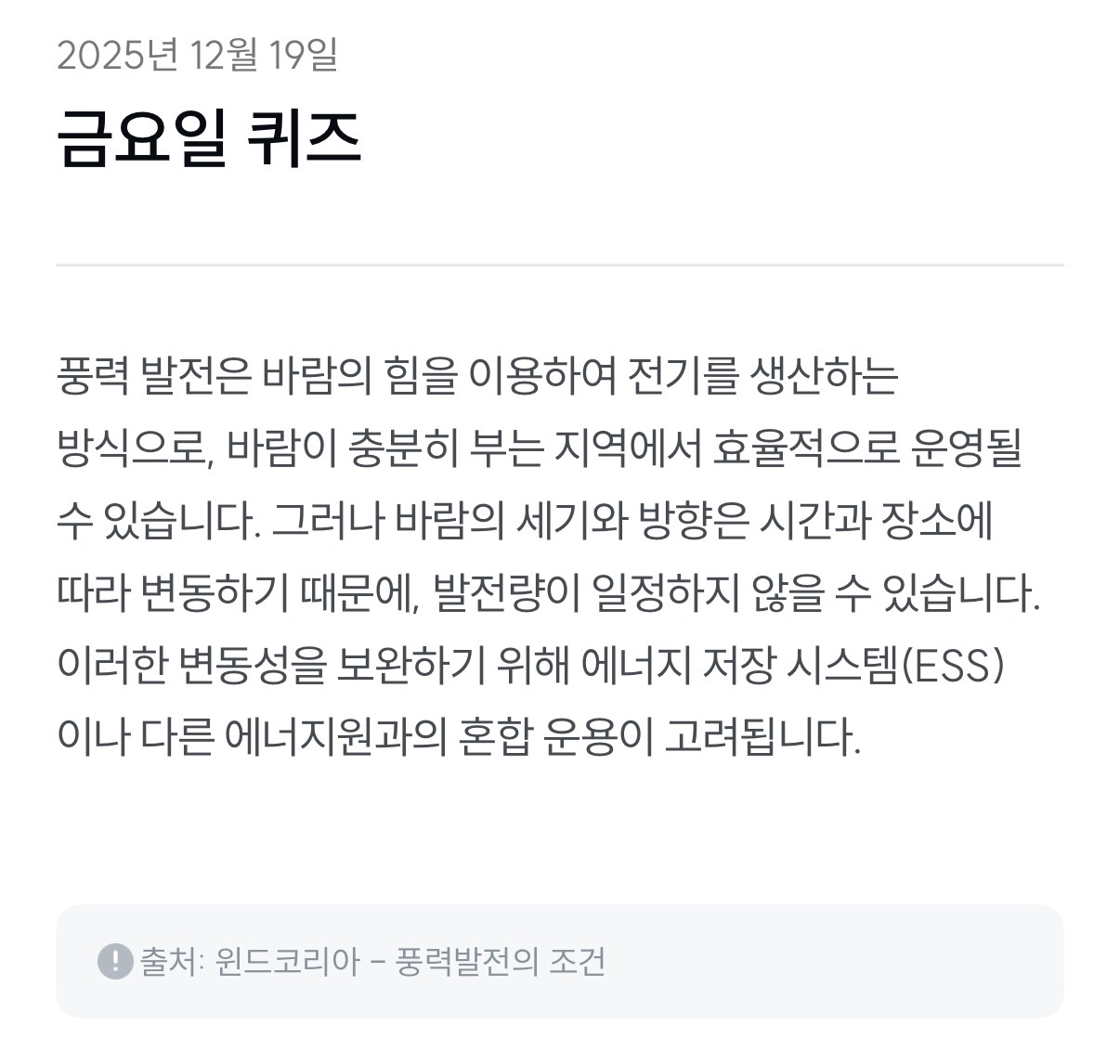 2025년 12월 19일 오늘의 퀴즈 정답 및 기후 정보 정리