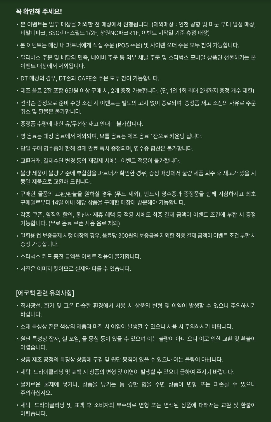 • 스타벅스 에코백 1개 증정